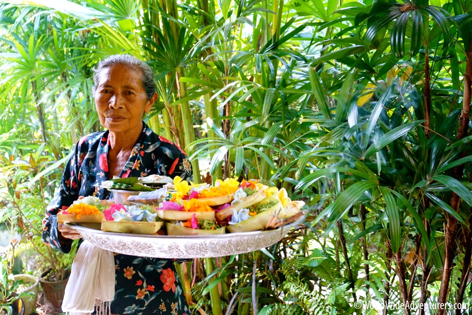 A beautiful sight of dedication seen frequently in Bali.