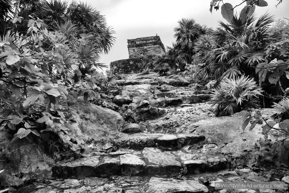 We had swum in the cenotes, swum at the beach, and swum with the turtles and now it was time to hit the world famous Tulum Mayan Ruins.