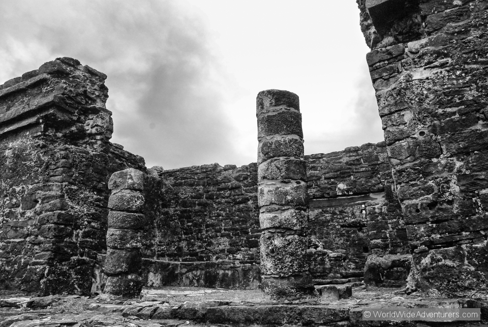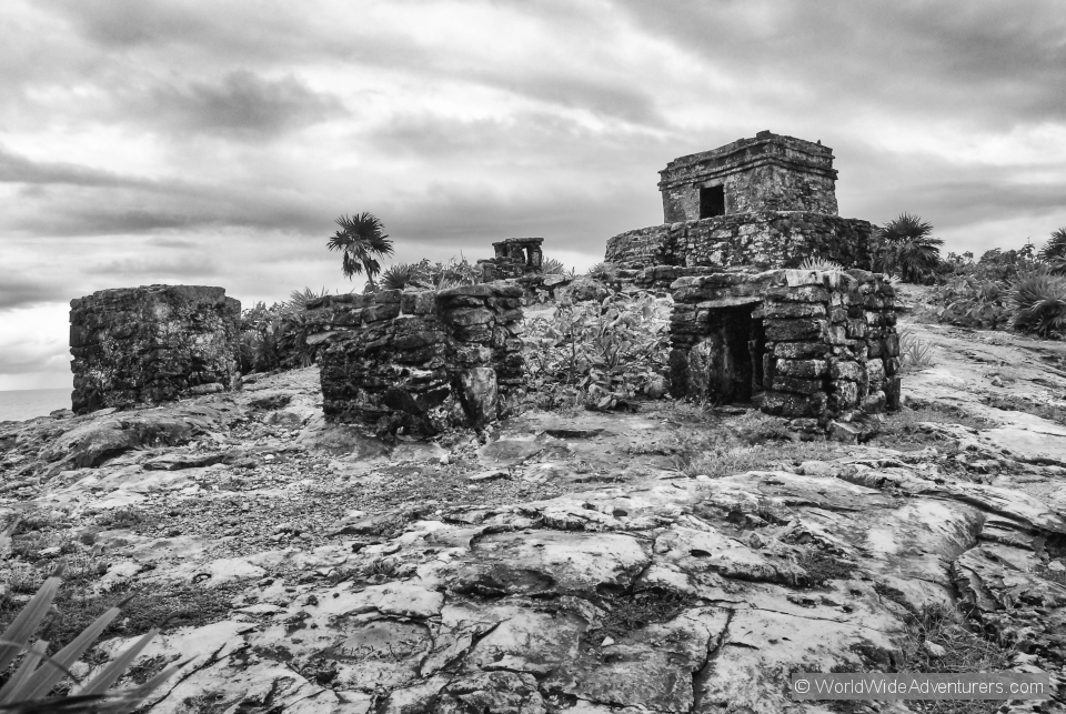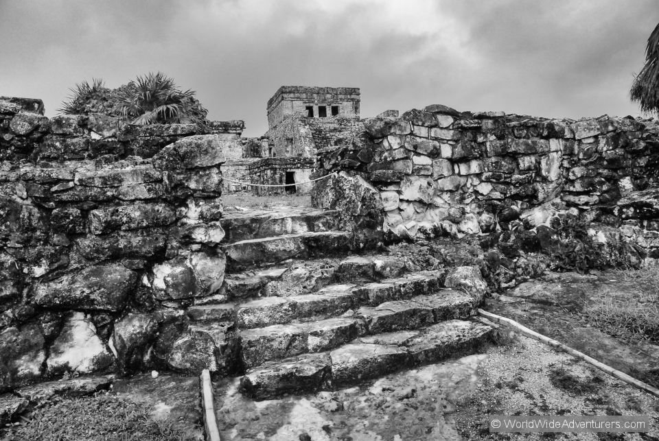To my utter dismay everything at the Tulum Mayan Ruins was roped off from close viewing. Not only could I not get close to view the details, it was hard to photograph.